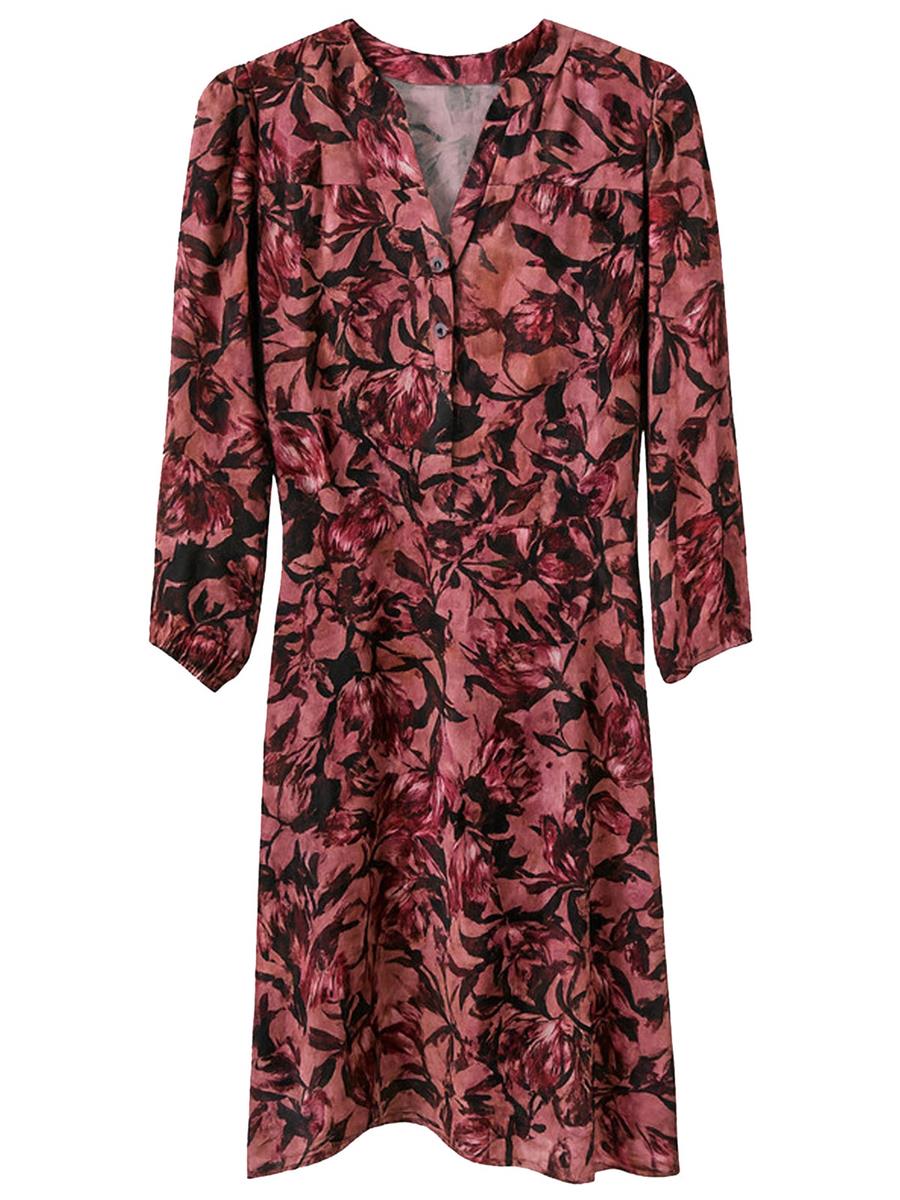 2-Biz kjole KAMPI i blød viskose med ¾-lange ærmer og rund hals med V-udskæring. Kjolen har et smukt og moderne print, der giver et stilfuldt og feminint udtryk. Perfekt til både hverdag og fest, når du ønsker en komfortabel og elegant kjole.