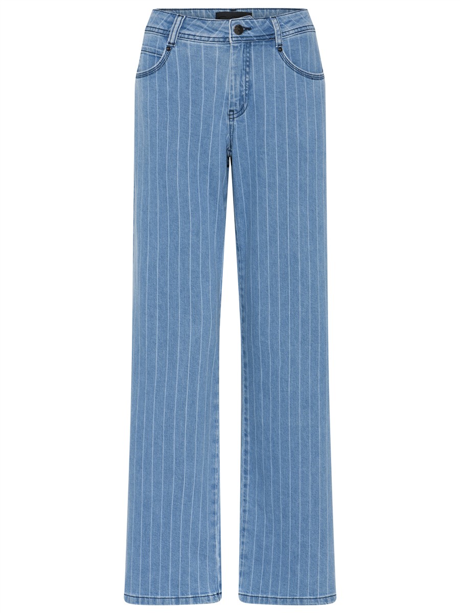 Bukserne er med brede bukseben og lommer i siden samt bagpå.