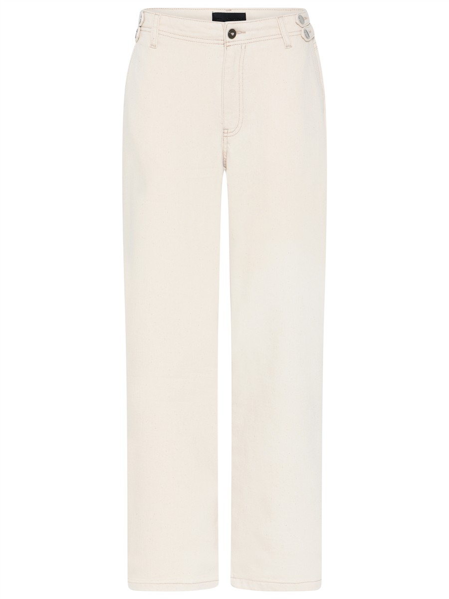 Den lyse denim giver et friskt og eksklusivt look, mens de fine stikningsdetaljer tilfører et tidløst jeansudtryk. Bagpå har buksen en diskret læderpatch og enkle baglommer.