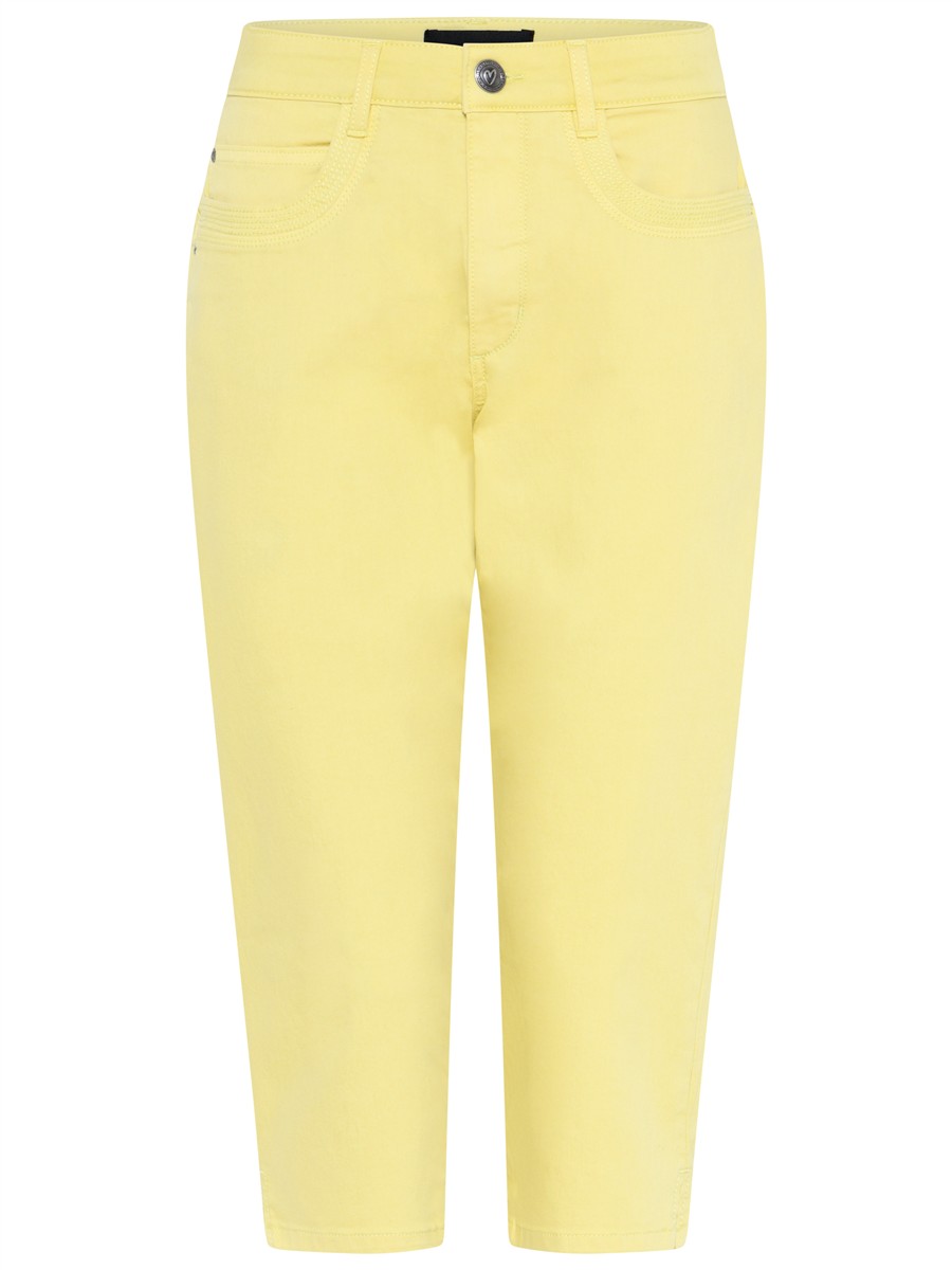 Buksen har 2 skrå lommer bagpå med en smart detalje samt bæltestropper. Nederst på buksen er der en lille slids. Den har en længde på 50 cm - perfekt til sommeren.