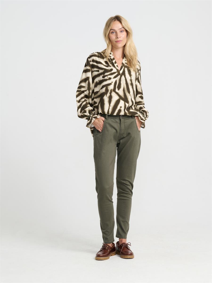 Smart mønstret bluse fra Costamani. Blusen har elastik ved håndleddet og en flot v-udskæring. Den kan bruges til både hverdag og fest.