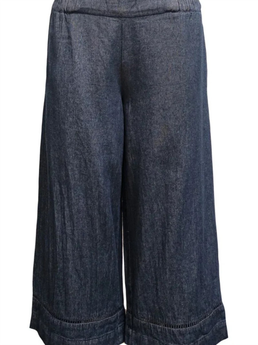 Culotte buks med bred pasform, lommer og elastik i talje. Buksen har et opsmøg ved benkanten.