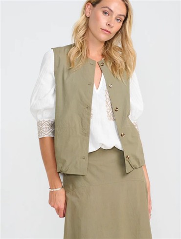 Elegant vest med rund hals og dekorative knapper.