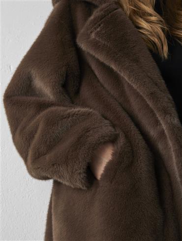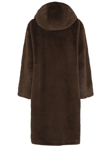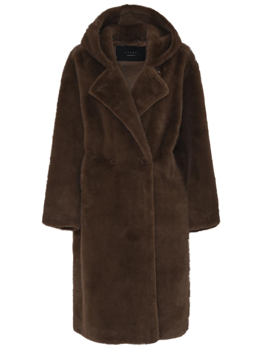 Pelsen er i en flot mørkebrun farve og med dobbeltradet knapper.