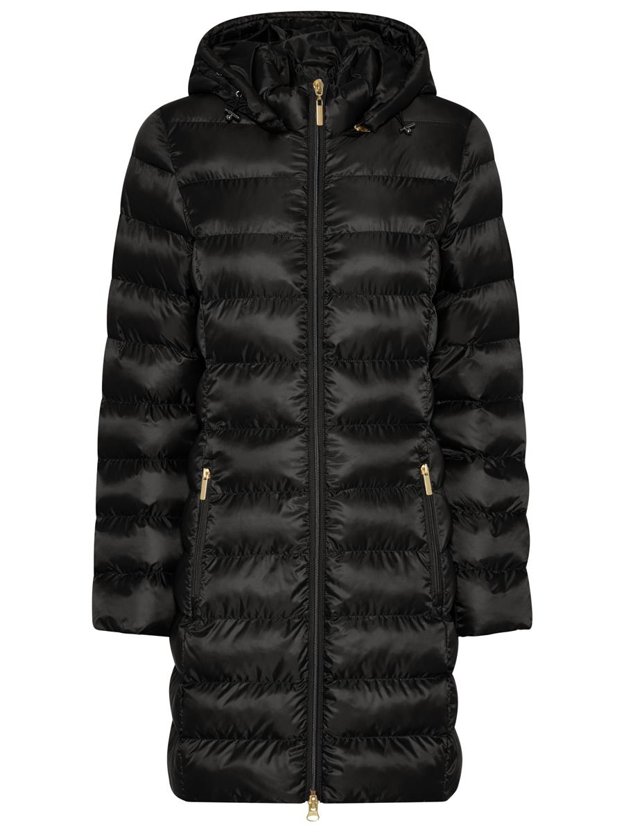 Lang quiltet vinterjakke fra Etage lavet i 100% genbrugspolyester.