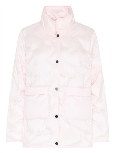 Elegant lyserød pufferjakkefra Etage, som kombinerer stil og funktionalitet. Jakken er fremstillet i en polyesterkvalitet med smuk glans, som giver et moderne, eksklusivt look. Den quiltede konstruktion holder på varmen og sikrer en behagelig, let fornemmelse – perfekt til både hverdagsbrug og udendørsaktiviteter.