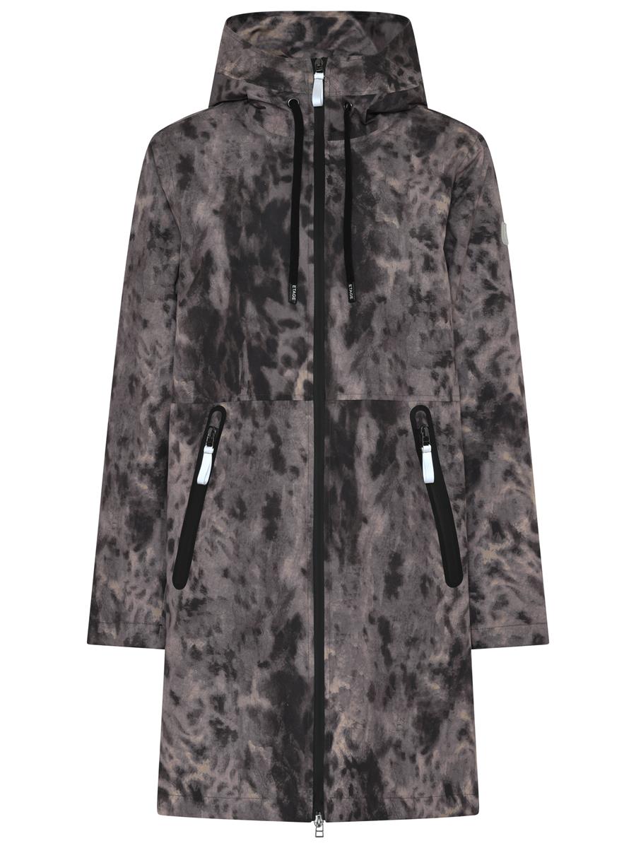 Regnjakke fra Etage i et smukt abstrakt mønster i brune/grå farver.