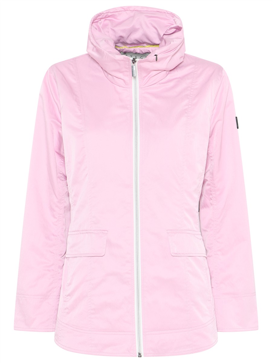 Jakken er designet med praktiske detaljer, der gør den både anvendelig og samtidig smart. Den har en gennemgående lynlås, justerbar talje, der fremhæver figuren, og en rummelig skjult hætte, som giver ekstra beskyttelse på blæsende dage. De diskrete lommer med klap og metalknapperne på manchetten fuldender looket med et sporty touch.