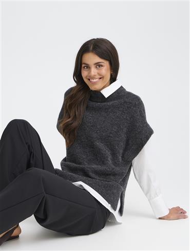 Strikket vest i i afslappet pasform, korte ærmer, slids i siderne og høj hals.