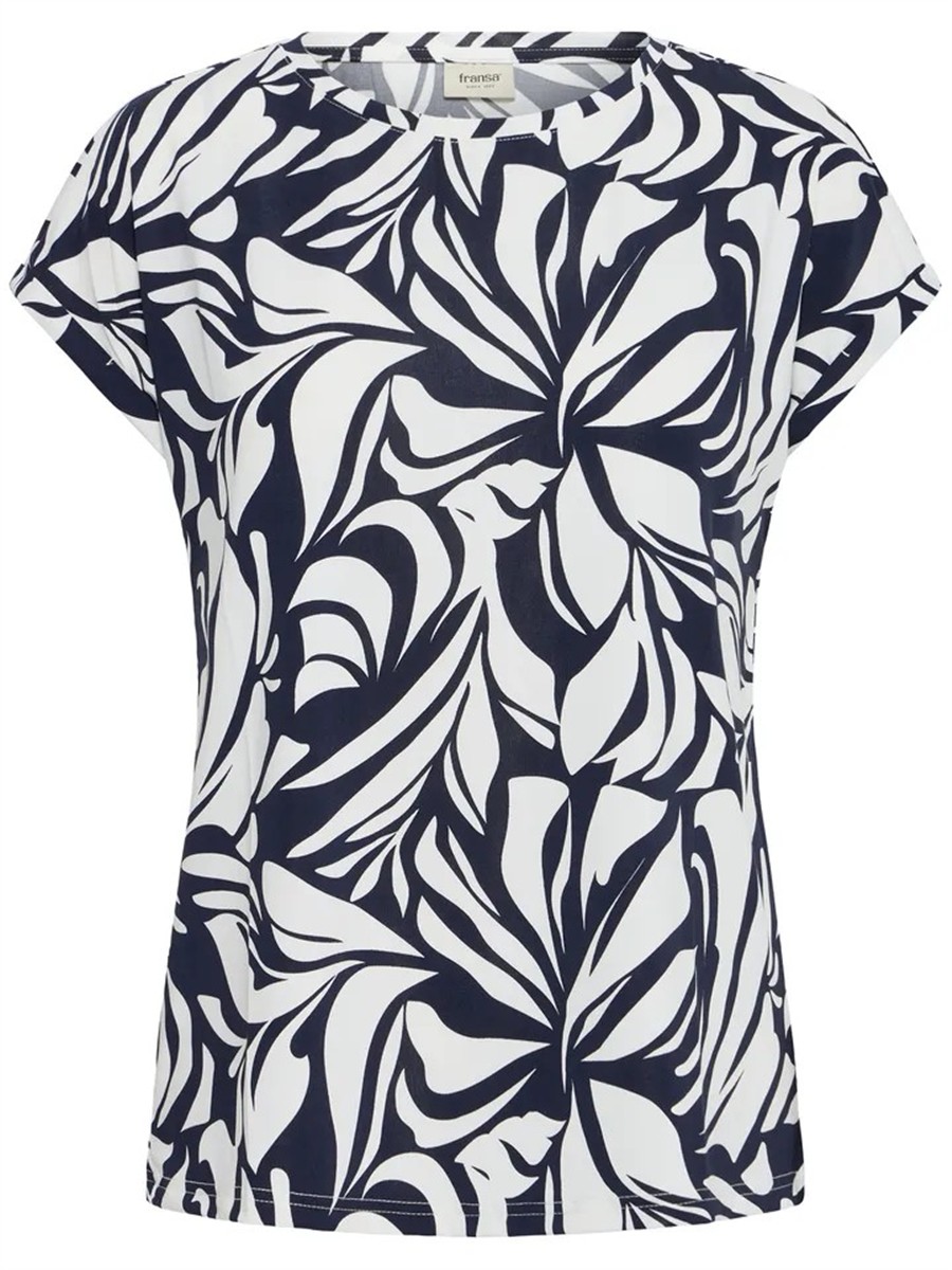 Lækker Fransa T-shirt med rund hals og kort ærme med opsmøg i løs pasform. Findes i tre forskellige spændende prints.