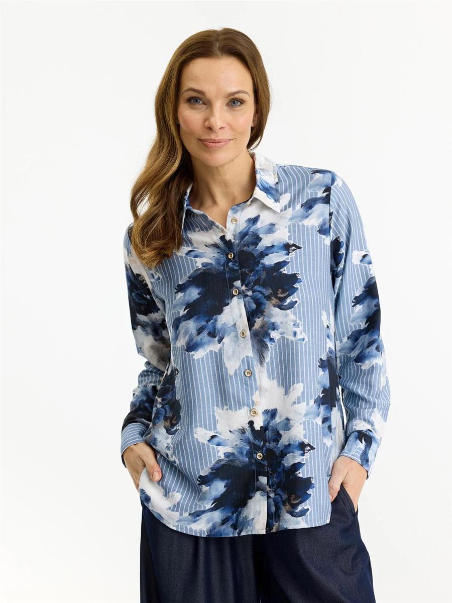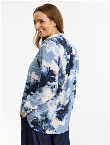 Super flot Skjorte fra In-Front med blomsterprint og striber. Lukkes med små guldknapper.