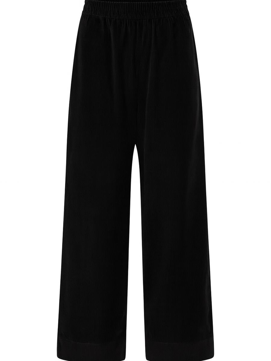 Bukserne er med bredt elastik i taljen og brede bukseben.