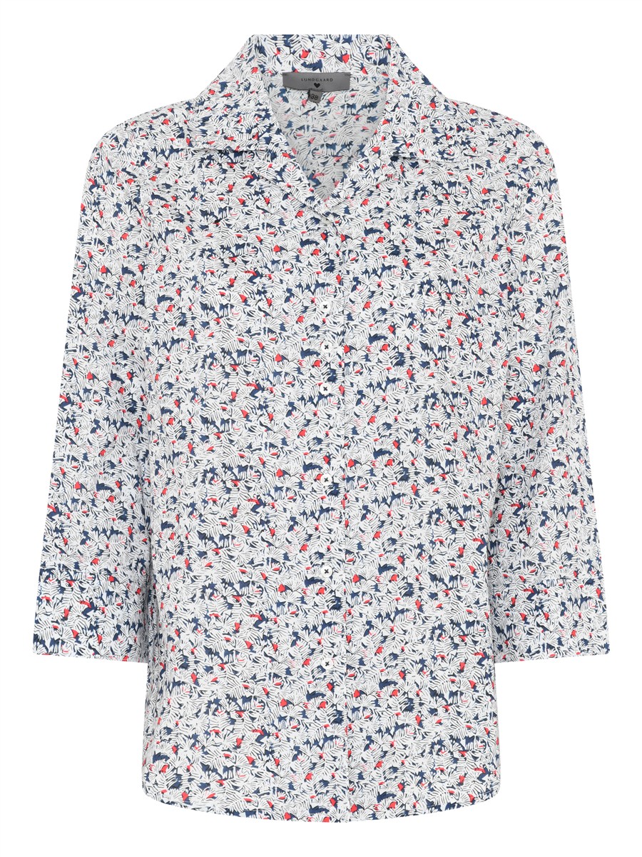 Lundgaard skjorte i et smukt print i blå, hvid og rød.