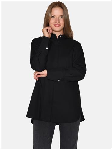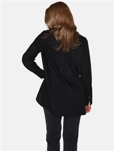 Skjorten er med skrå manchetter og en smuk perleknap ved manchet og hals.