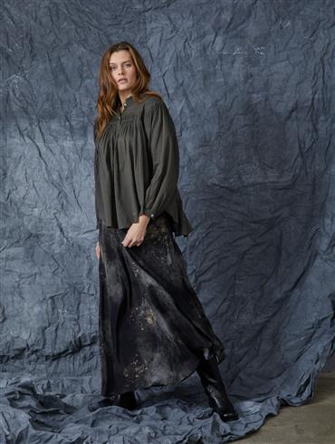 Skjorten har små læg på både front og bag samt ved skuldrene.