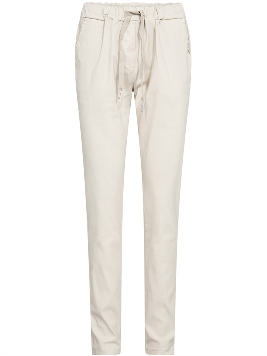 Cool og piv lækker buks fra Nü med masser af stræk i. Buksen er blød og behagelig, med snøre i livet og skrålommer. Har lidt fylde for oven og stram i snittet i benene. Meget flexibel buks, der er til den store side i størrelsen.