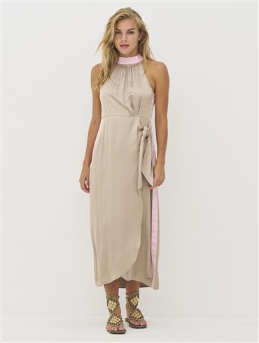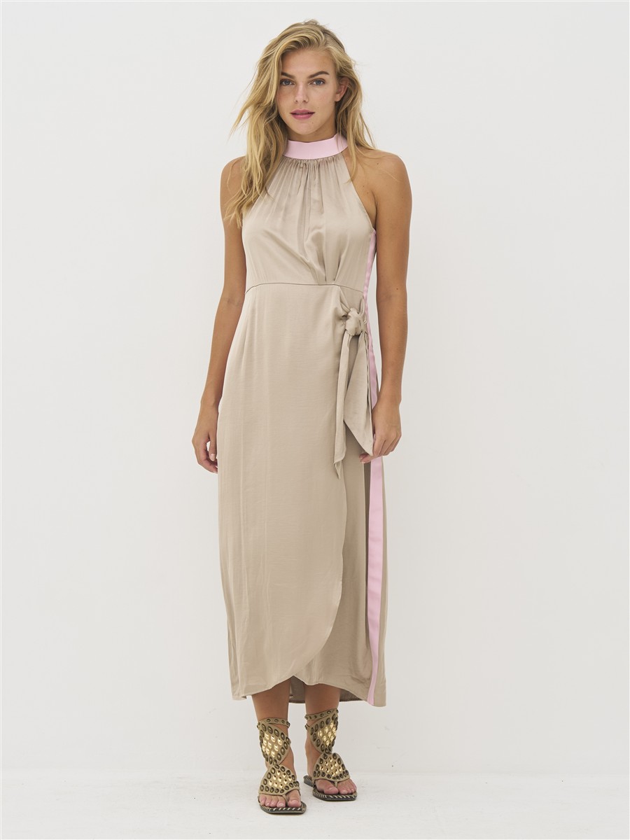 Kjolen er fremstillet i en blød viskoseblanding med en let glans, som giver et elegant og flydende fald. Den har en høj halsudskæring med elastisk kant.