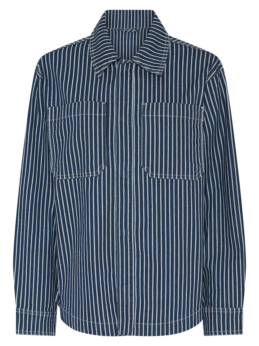 Skjorten er i flotte blå og hvide striber og med 2 brystlommer.