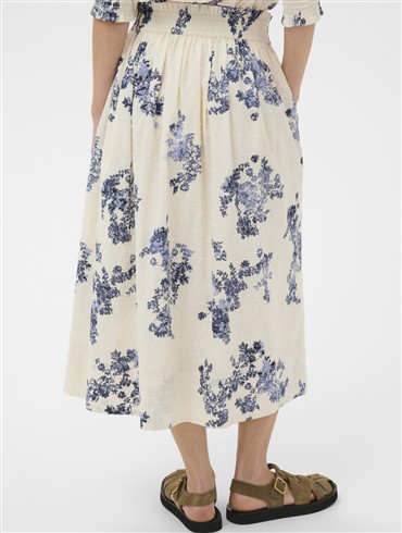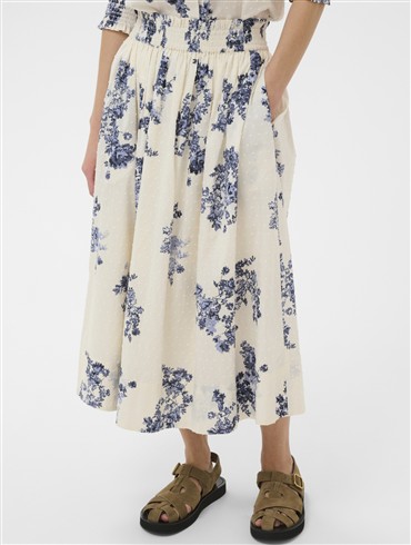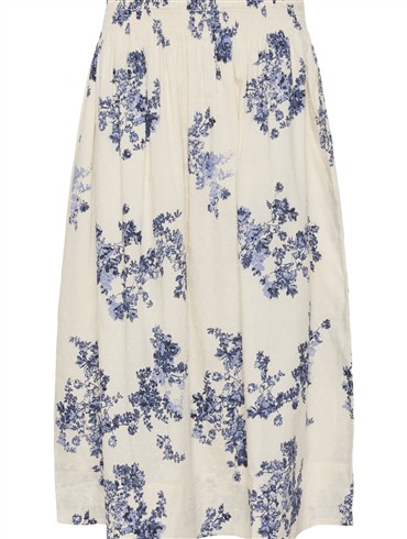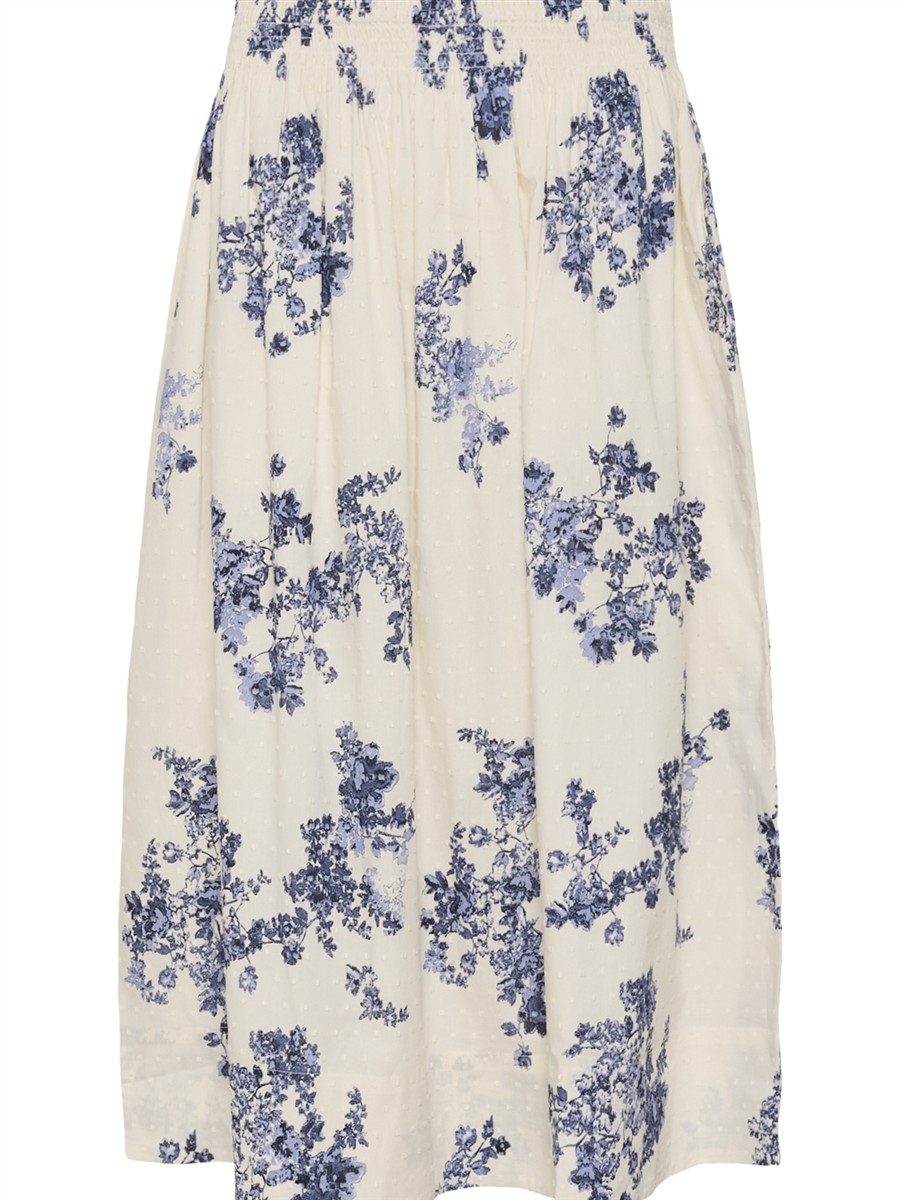 Part Two nederdel med prikket voile og flot blåt blomster mønster.