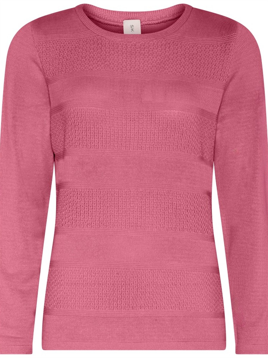 Skøn strik fra Skovhuus med fin struktur. Strikken har lange ærmer og rund hals. Kan bruges med en skjorte under eller over skuldrene en sommeraften.