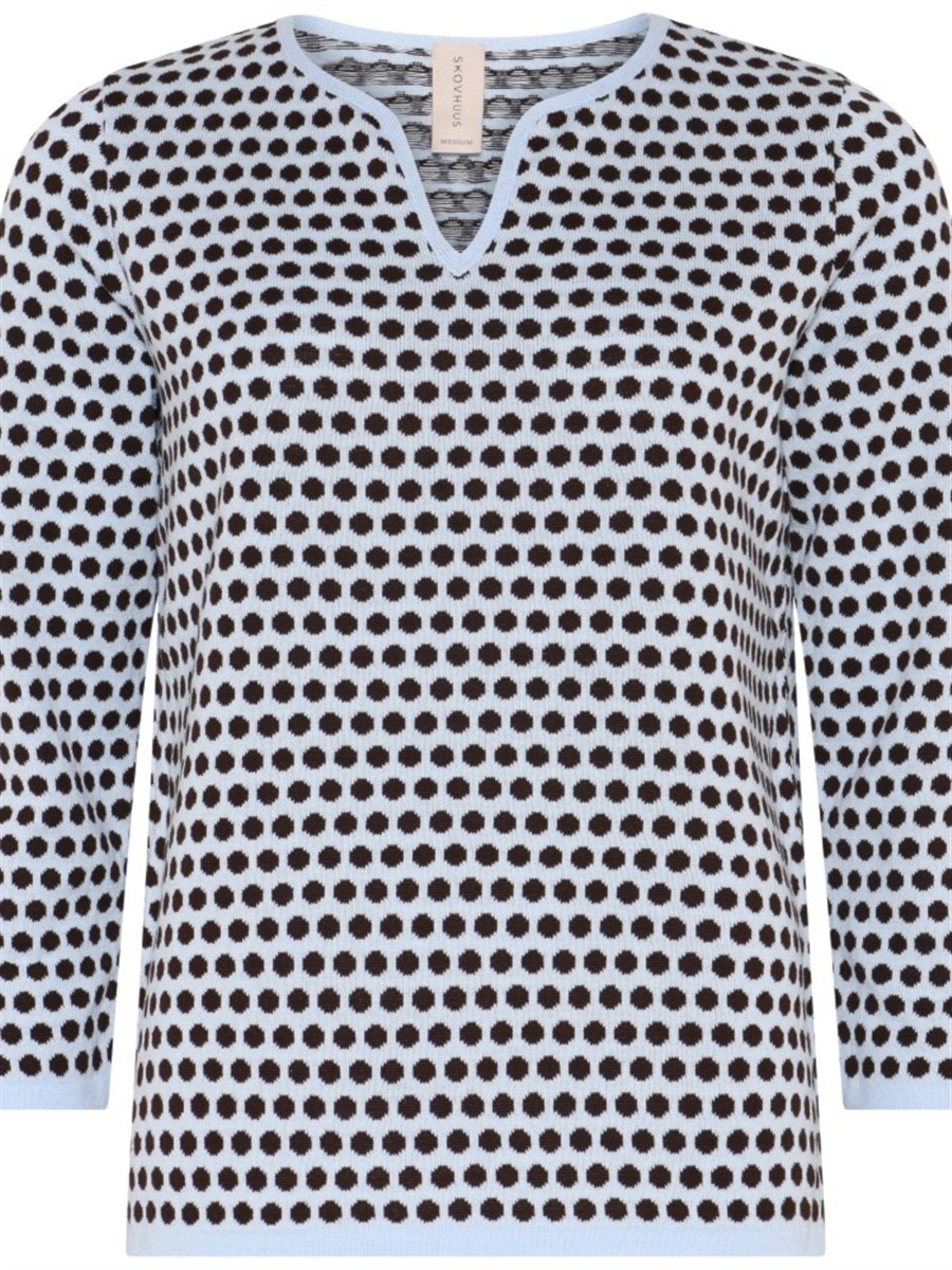 Kort strik fra Skovhuus, er med 3/4 ærmer og v-hals.