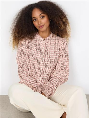 SC-BELLUA 2 er en skjorte fremstillet af 100 % LENZING™ ECOVERO™-viskose. Denne elegante skjorte har en mandarinkrave, knaplukning foran, et geometrisk print og lange ærmer, der ender i rynkede manchetter.