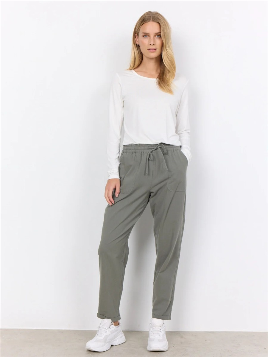 Cissie bukserne er lavet af 100% bomuld, den har elastik og snøre i livet.  Den bløde kvalitet og bindebånd i taljen gør dem super komfortable.