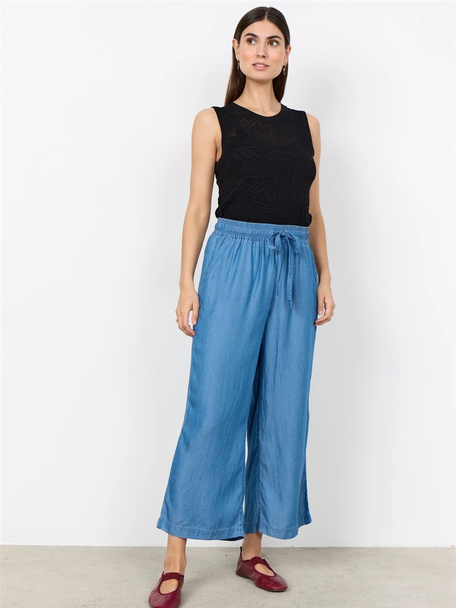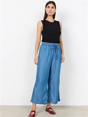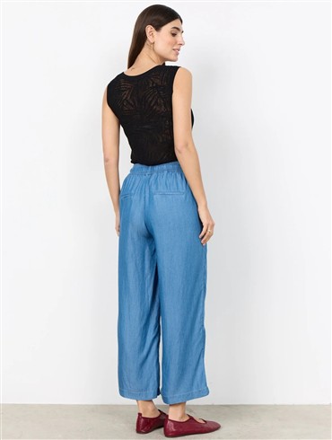 Sommerlige bukser med et denim-look lavet af 100% lyocell. Bukserne har en løs pasform med beklædte snøre i taljen, der gør dem super komfortable