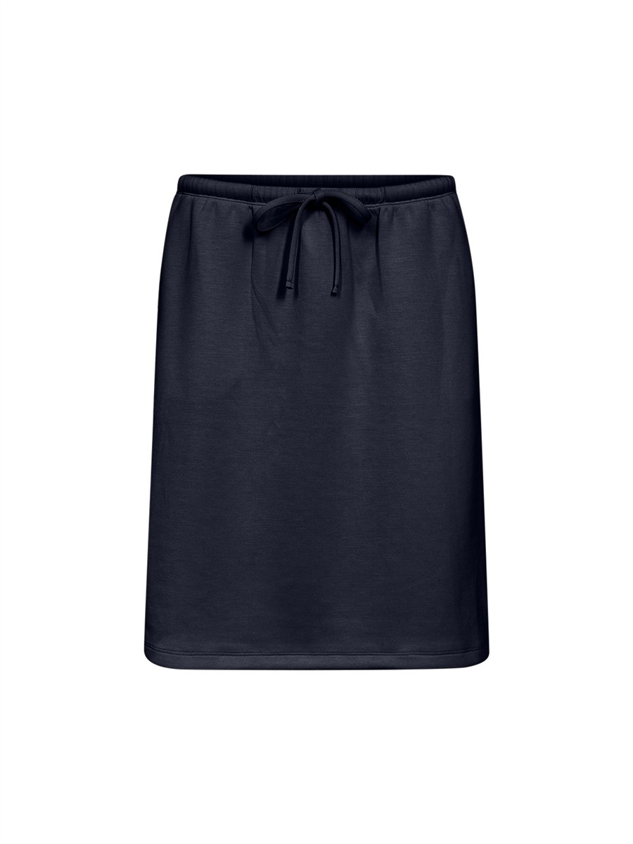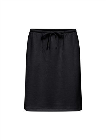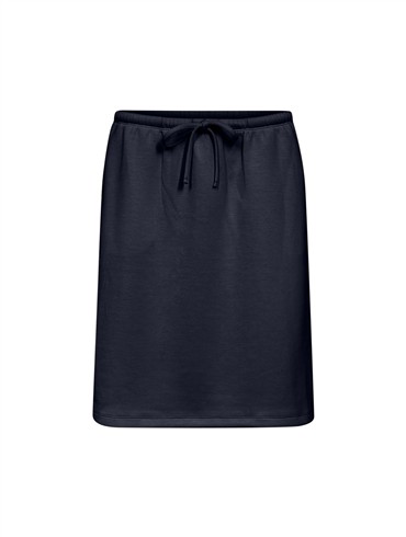 Kort nederdel med elastik og snøre i livet og små skrålommer i siderne.