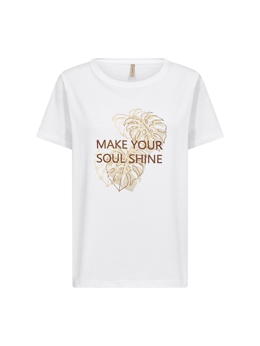 Rina T.shirten fra Soya er  fremstillet af 95 % økologisk bomuld og 5 % elastan. T-shirten har en rund halsudskæring og et motiverende tekstprint på forsiden.